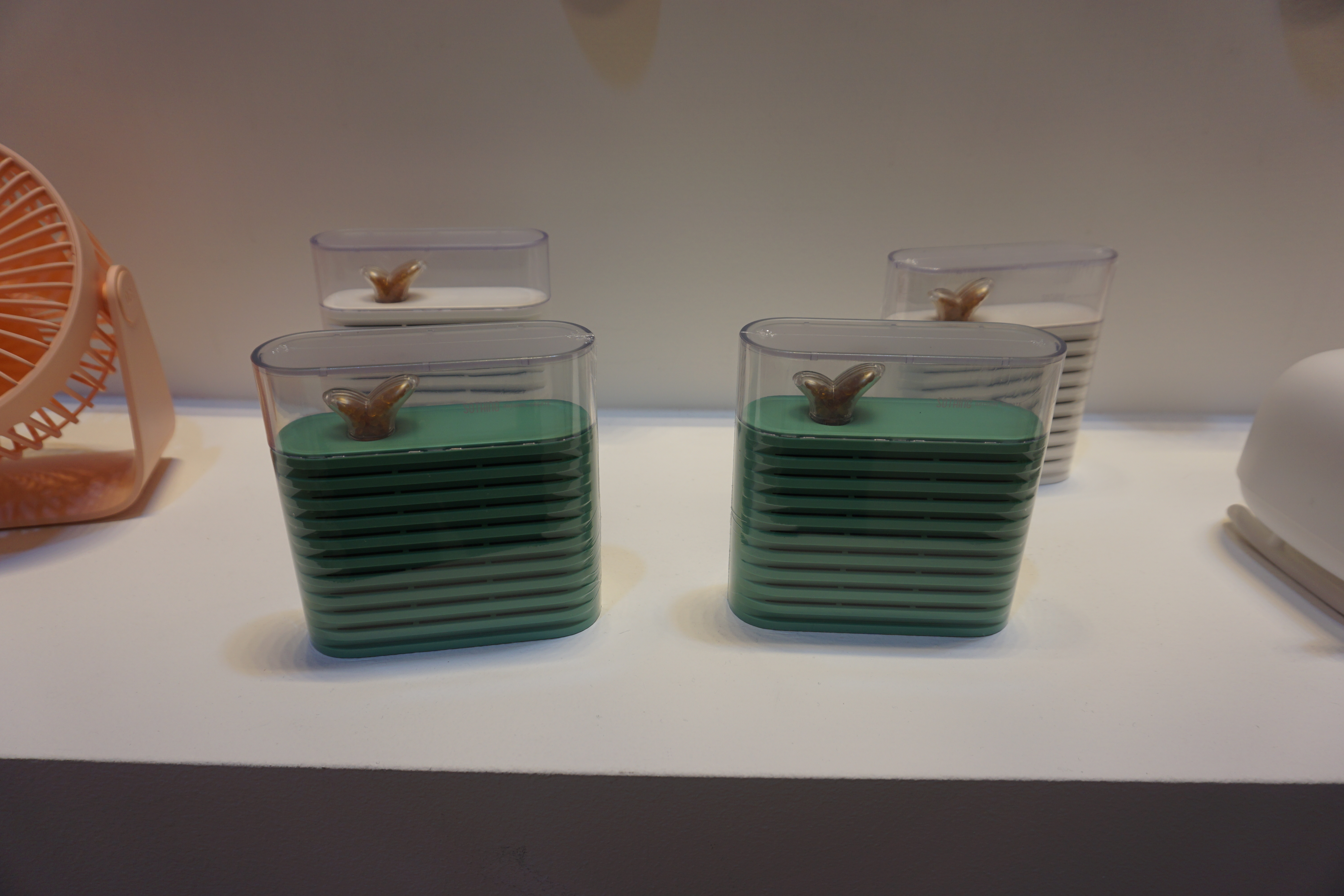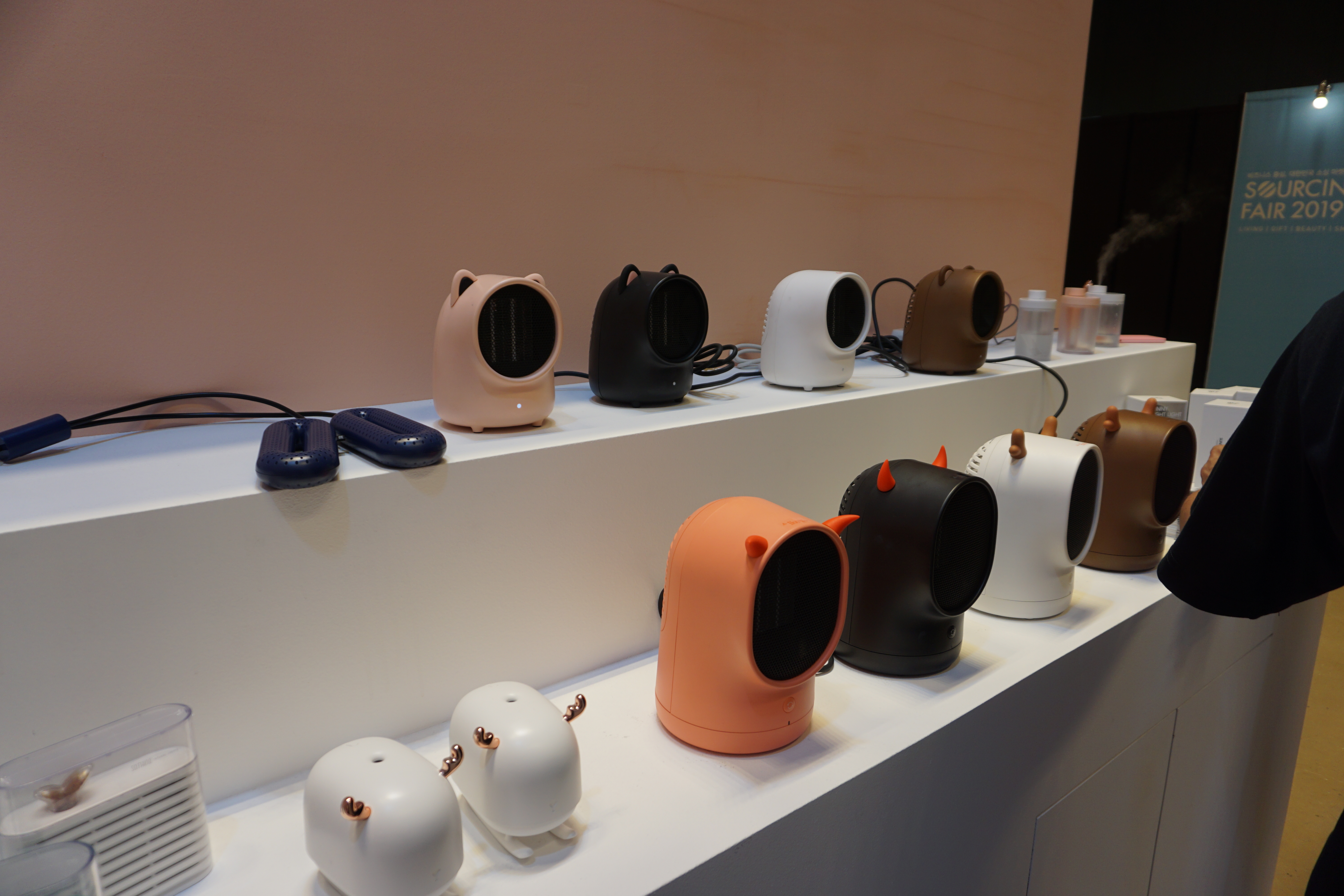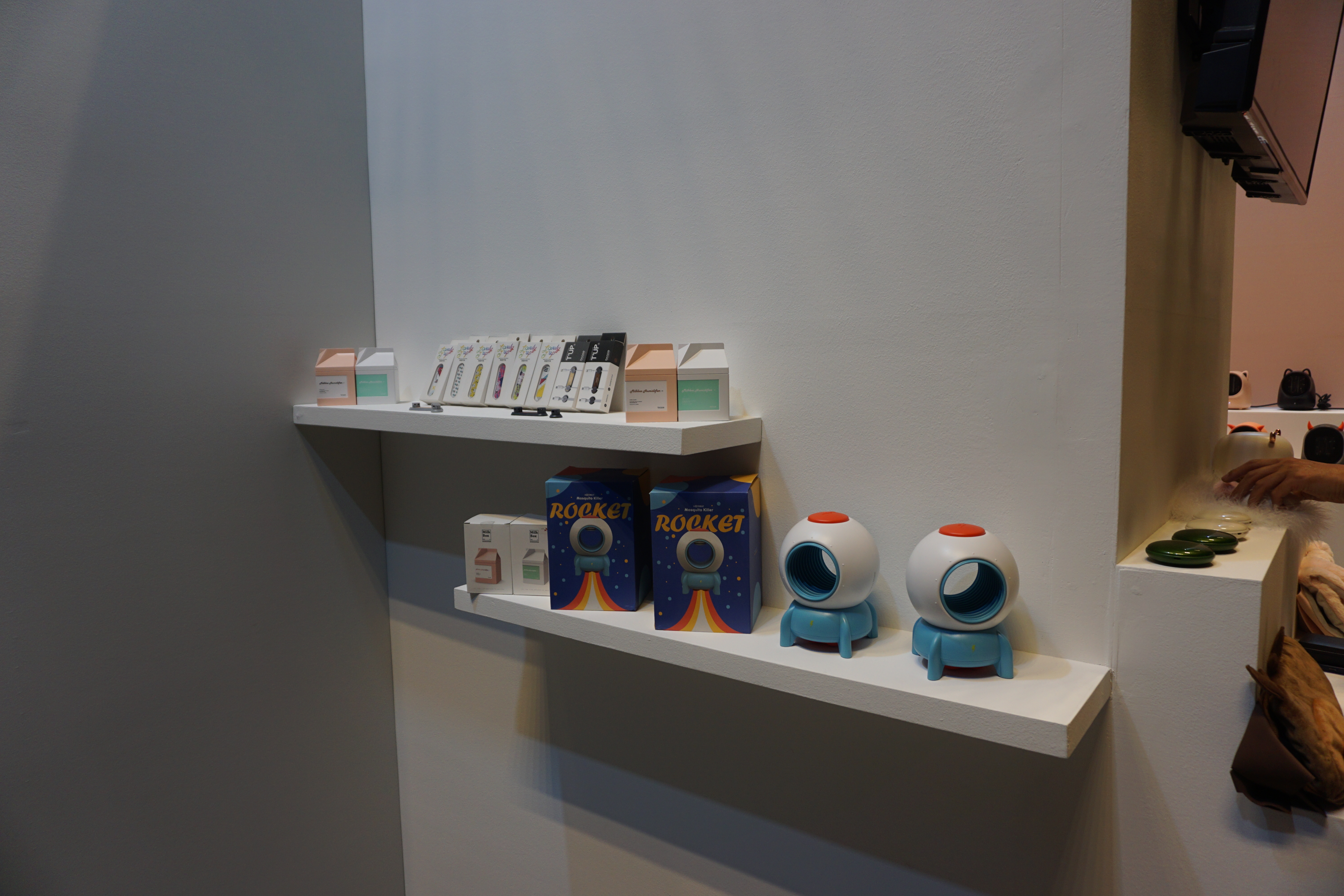 내년 여름에 선보일 새로운 모기포충기 로켓과 TUP 마그네틱 선정리 홀더와 밀크박스 가습기도 전시되어있습니다