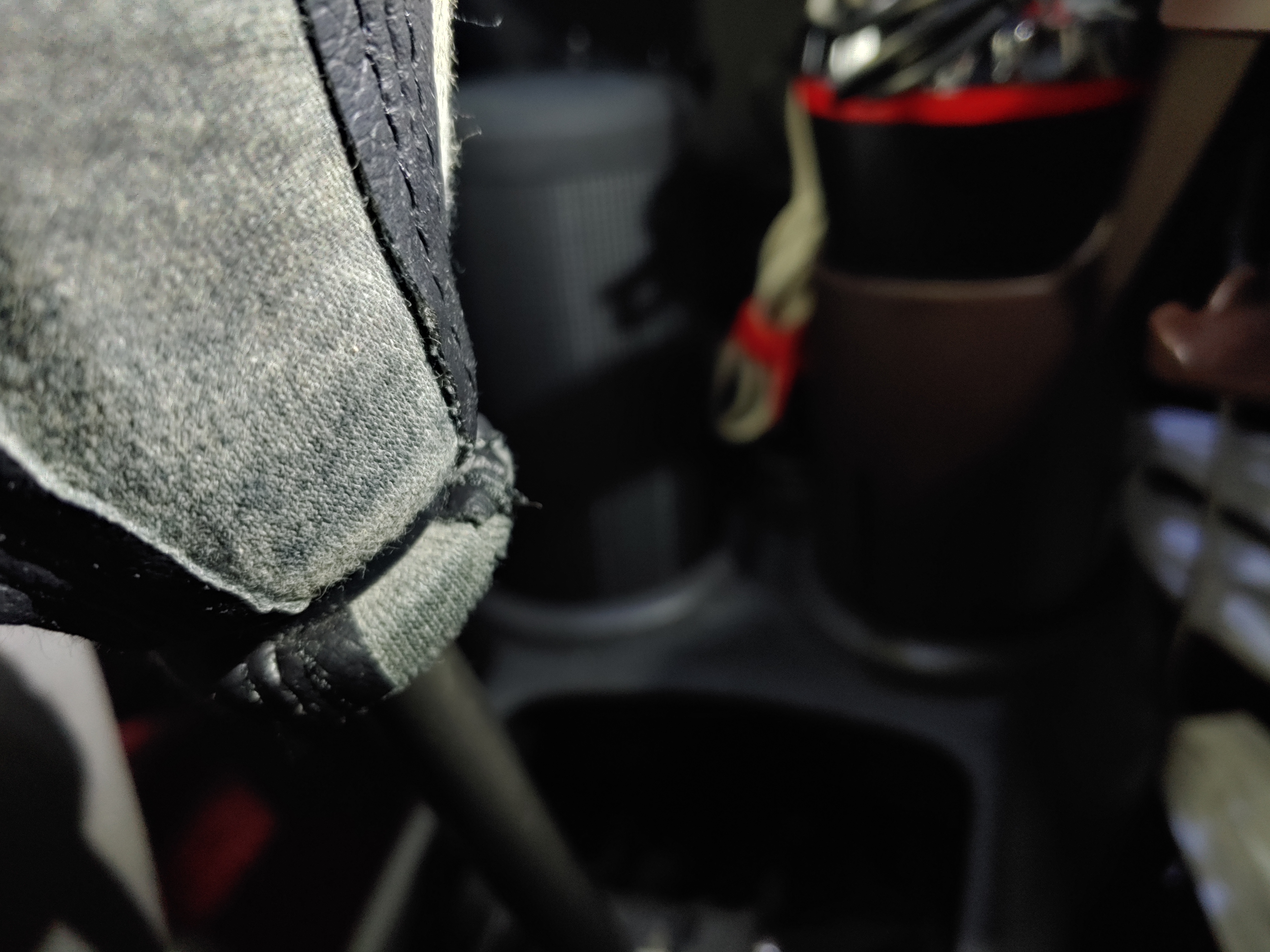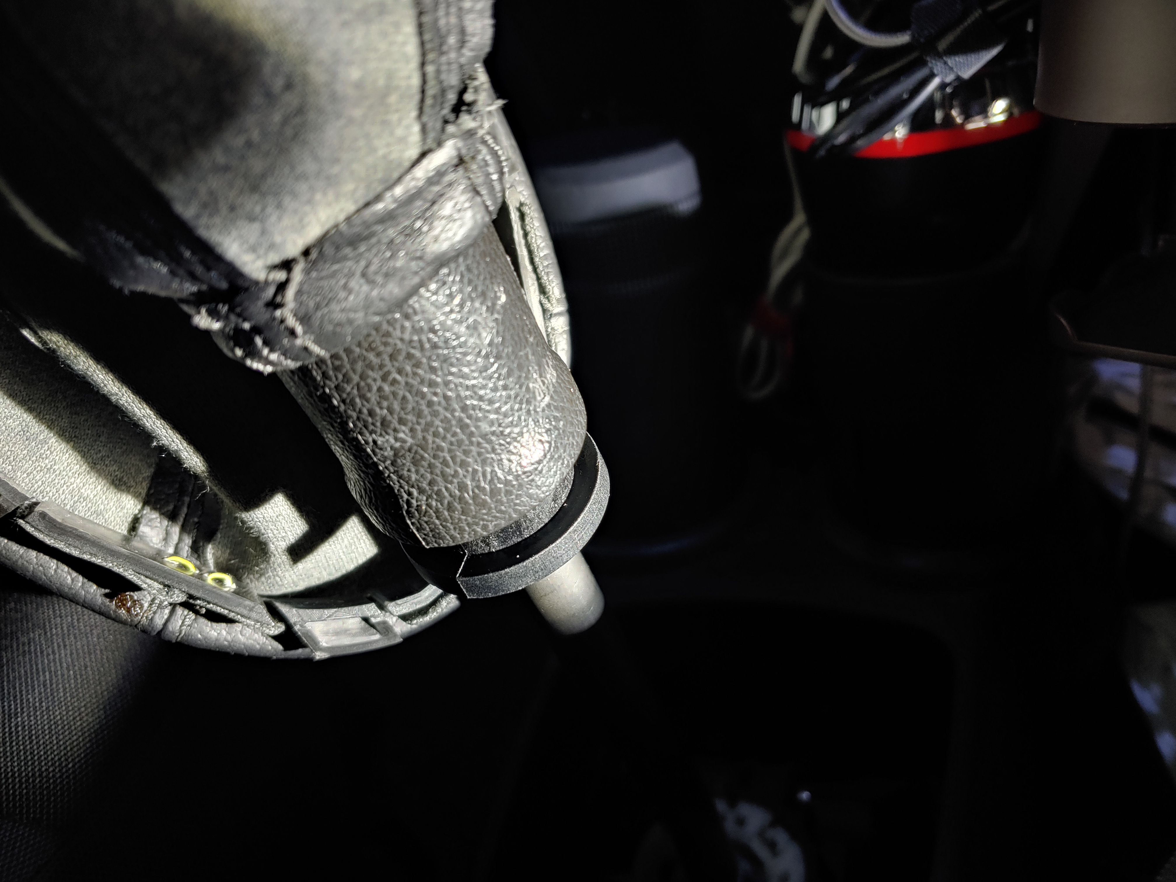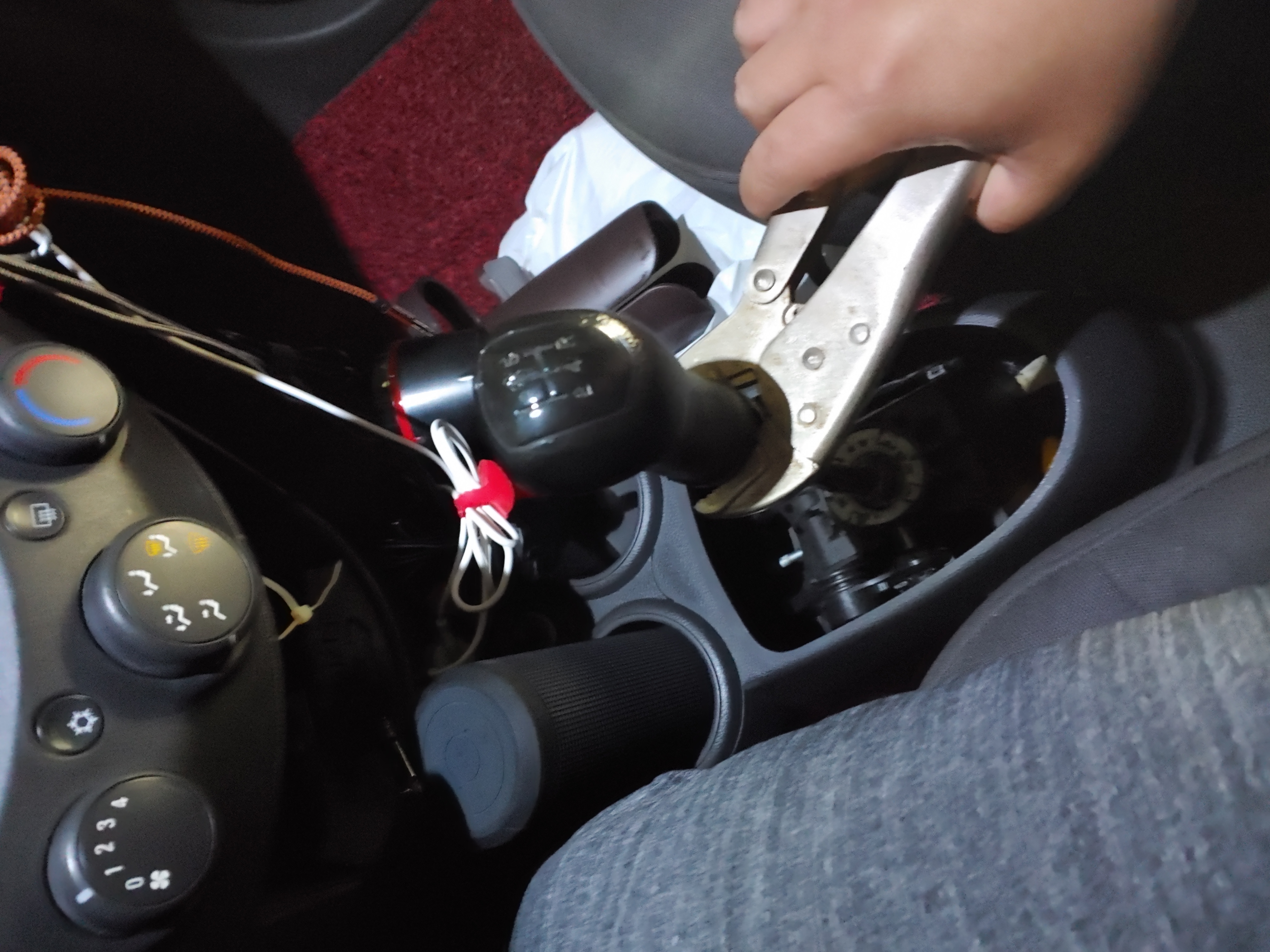 기어 노브 안쪽에 케이블 타이로 묶여있습니다. 이 부분을 잘라내서 기어 커버를 완전히 벗겨 냅니다