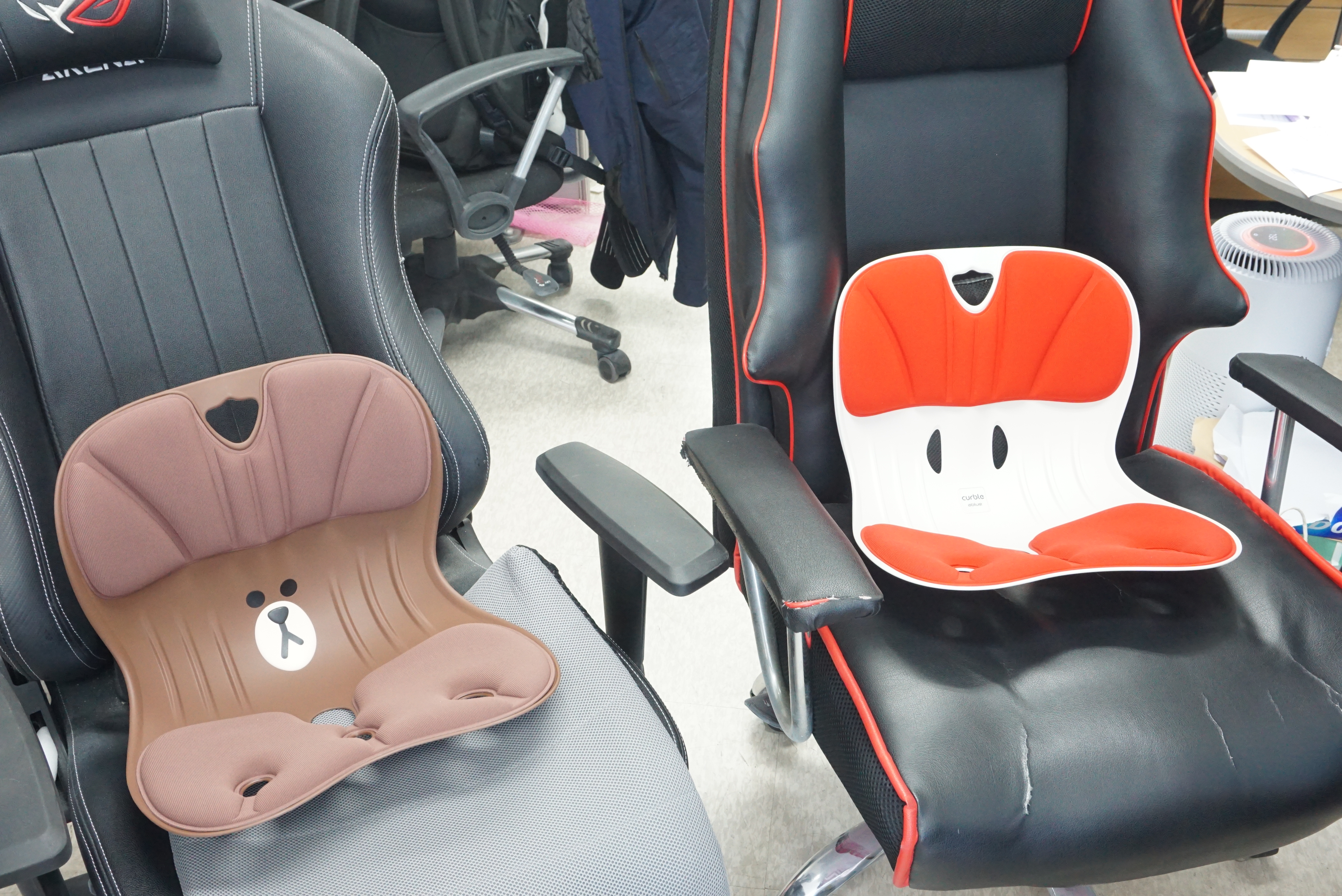 하루종일 앉아있어야 하는 특성상 조금이라도 바르게 앉아있기 위해 커블 체어를 씁니다