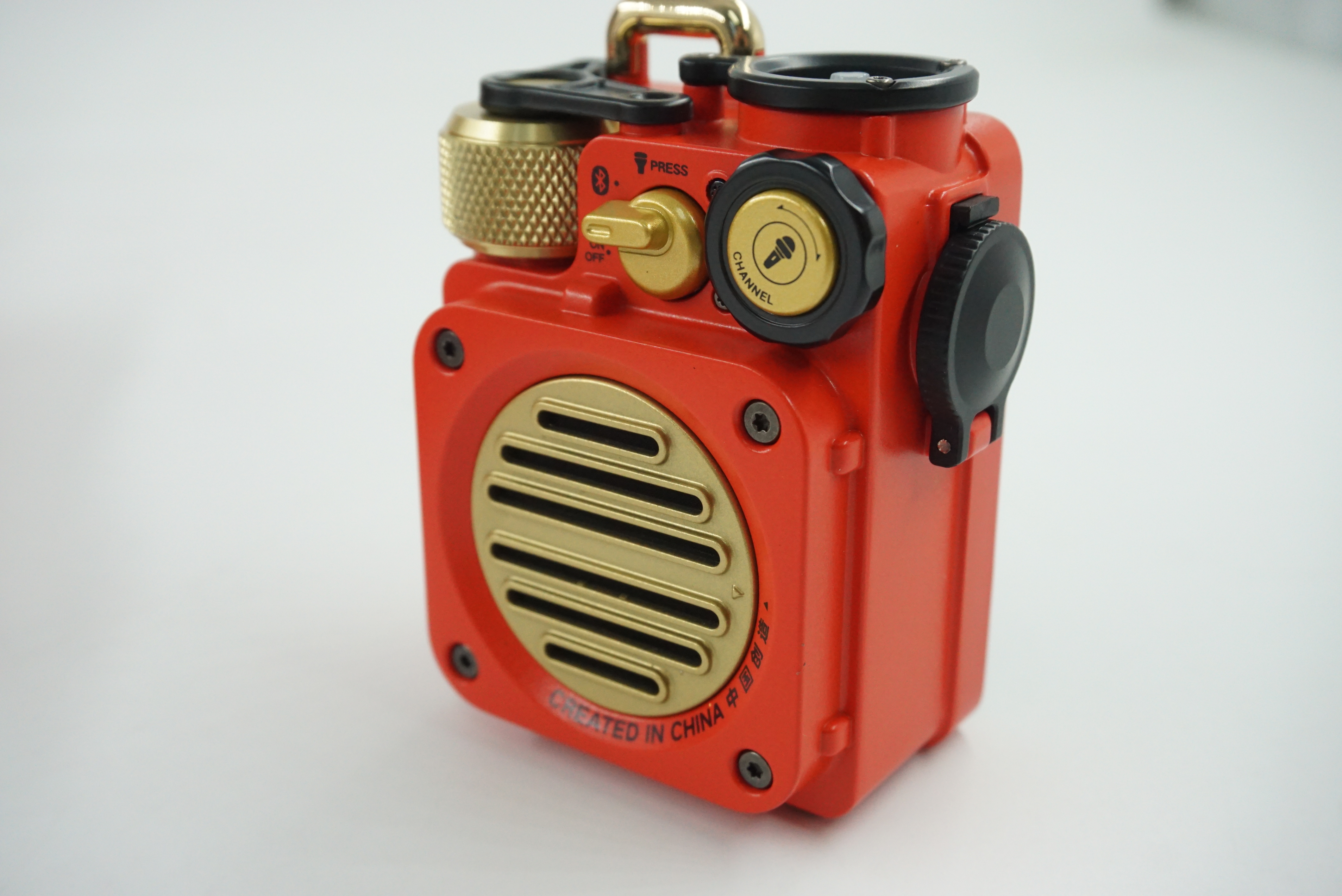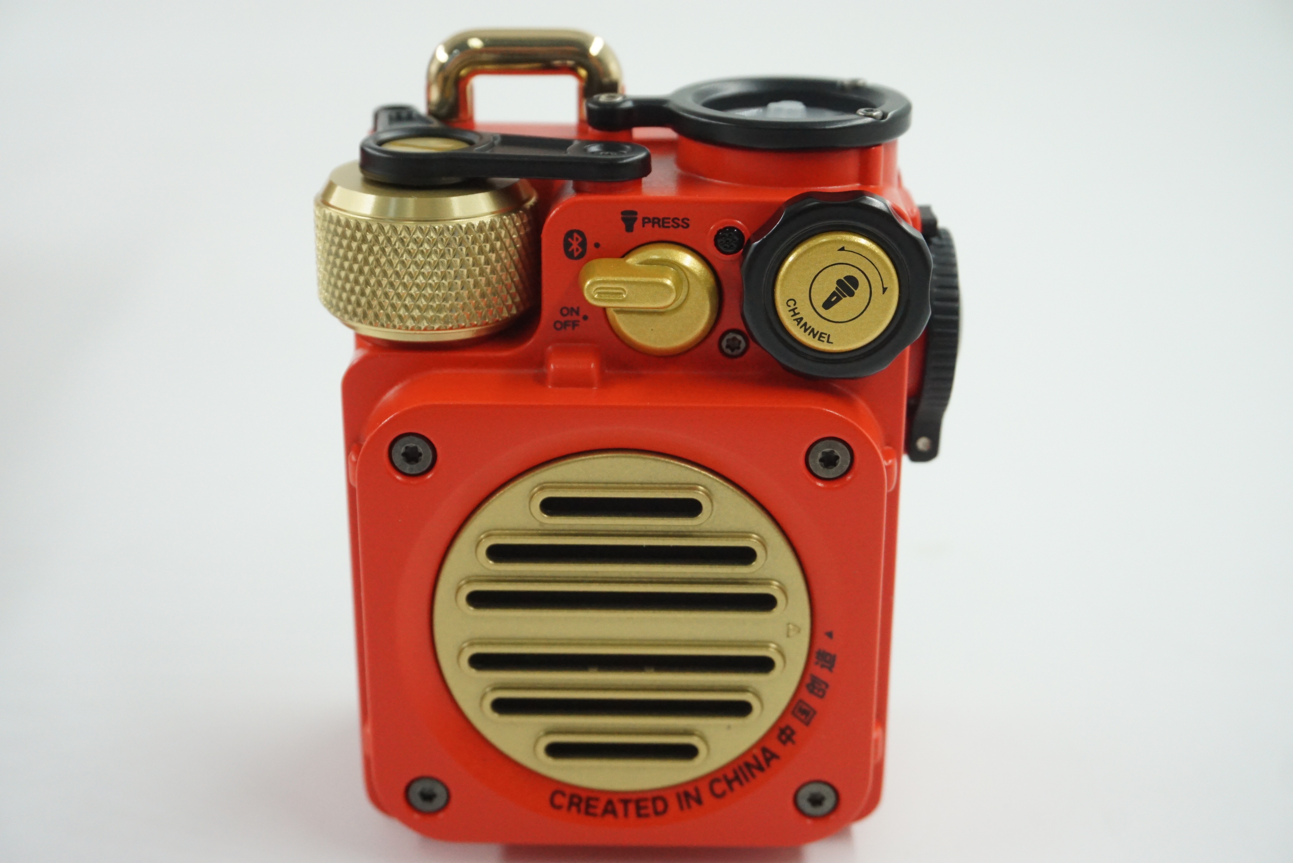 전형적인 밀리터리 디자인으로 조작 버튼은 간단합니다. 전원 조작부와 플래쉬 온오프 그리고 트랙 이동 / 정지 재생이 전부 입니다.