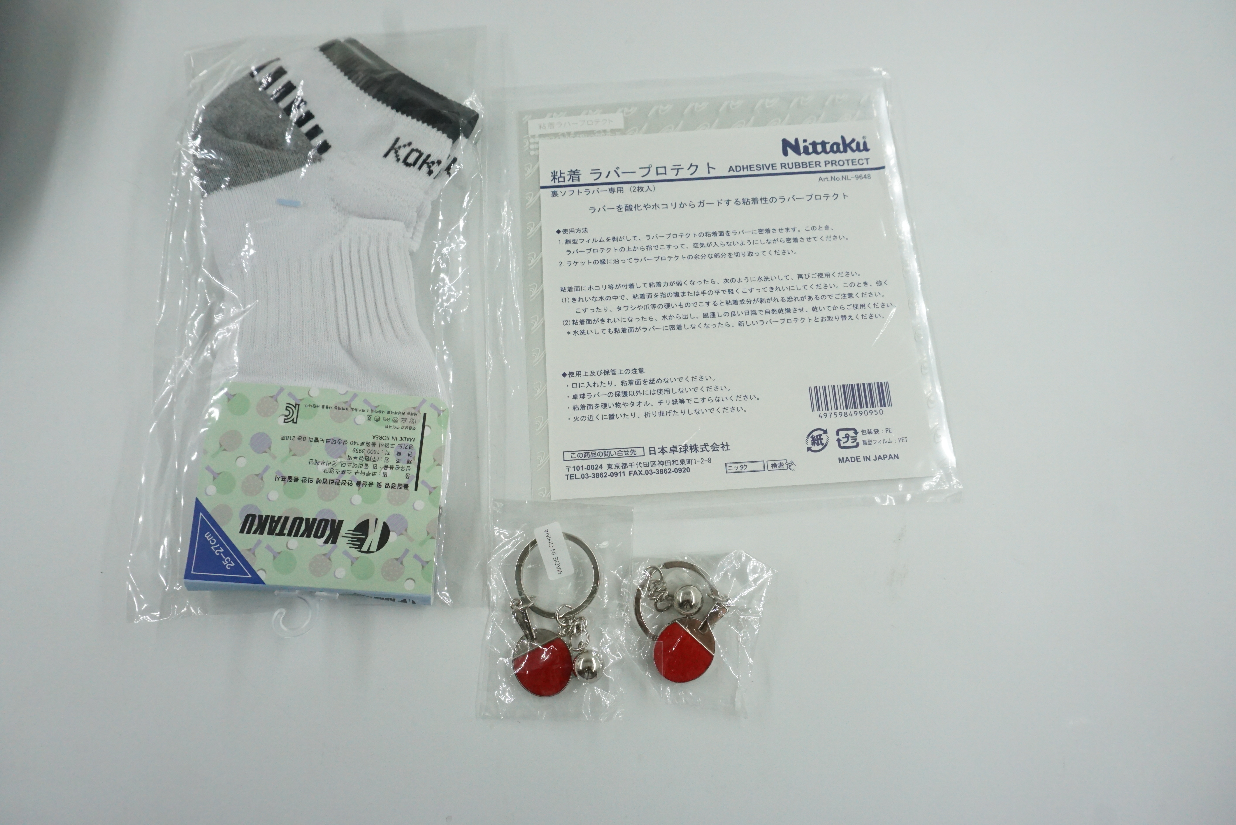 사은품으로 보내주신 양말과 탁구키링. 이 키링이 정말 예쁩니다.
