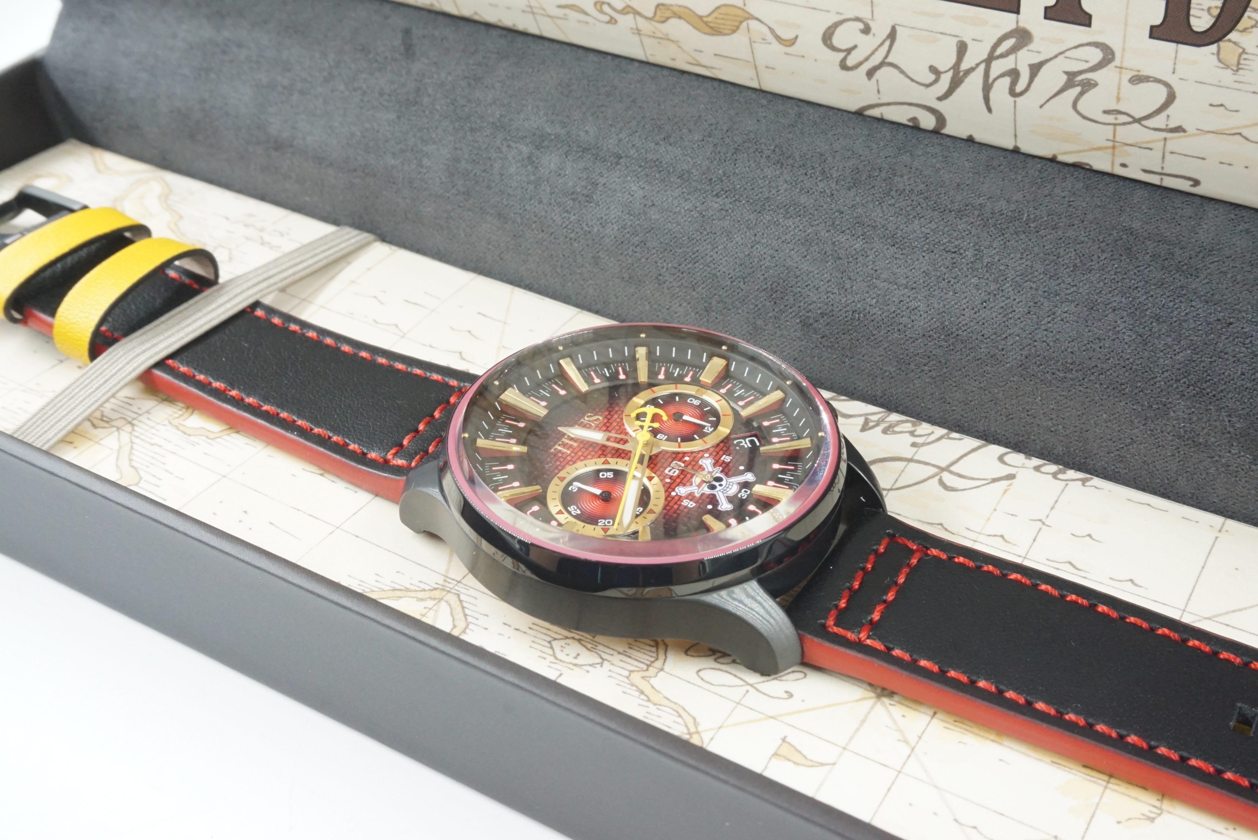 머나먼 항해의 지도가 그려진 보관함에 들어있는 시계와 함께 시계 콜렉션이 하나 더 늘어납니다.