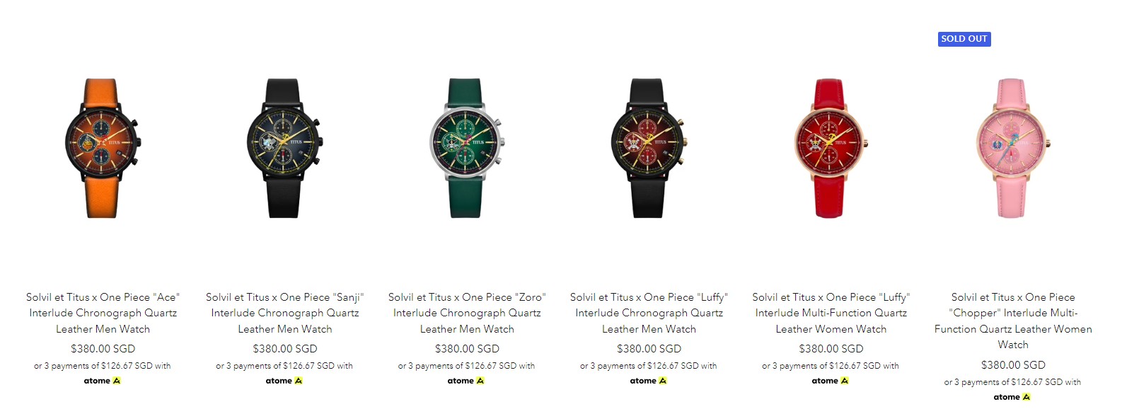 싱가포르 공식 홈페이지에 있는 이미지 입니다. 가죽줄과 메탈줄 두가지 제품이 있고 각 메탈줄1,500개와 가죽줄 1,000개 한정판입니다.