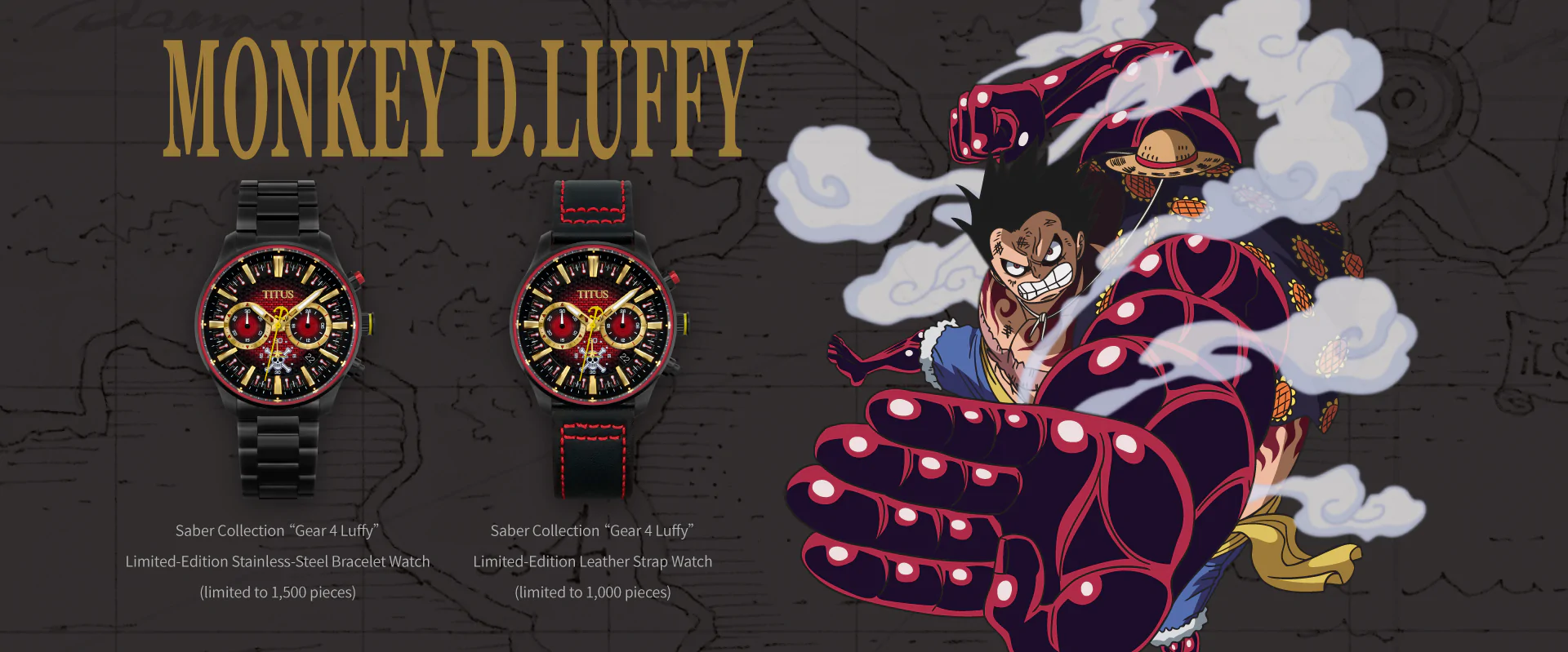 밀짚모자 해적단의 로고와 함께 기어4를 나타내는 강렬한 인상의 시계입니다. 볼수록 마음에 드네요.