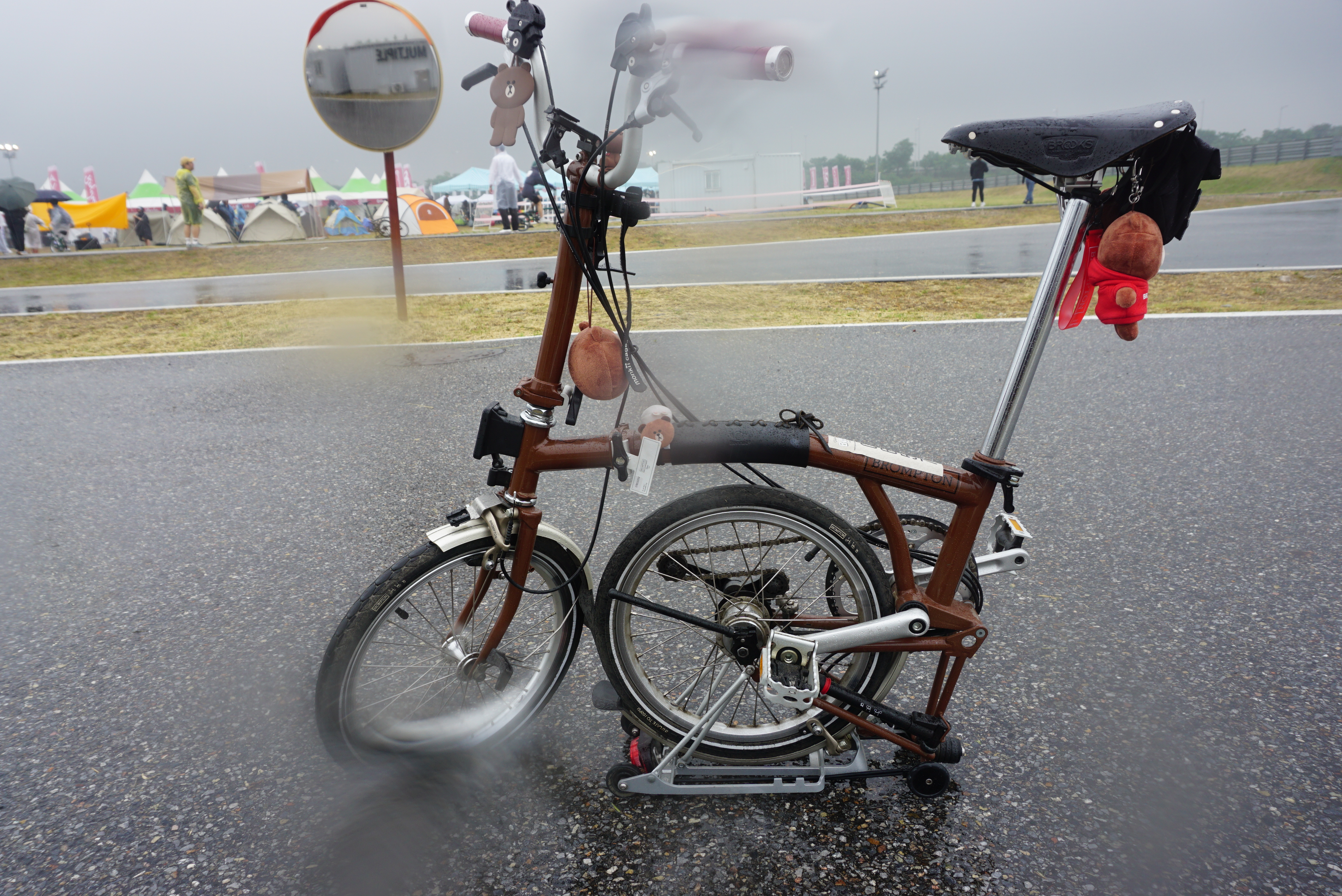 차에서 안꺼냈던 브롬톤을 결국 꺼냈다. 비맞추기 싫었는데 ㅠㅠ