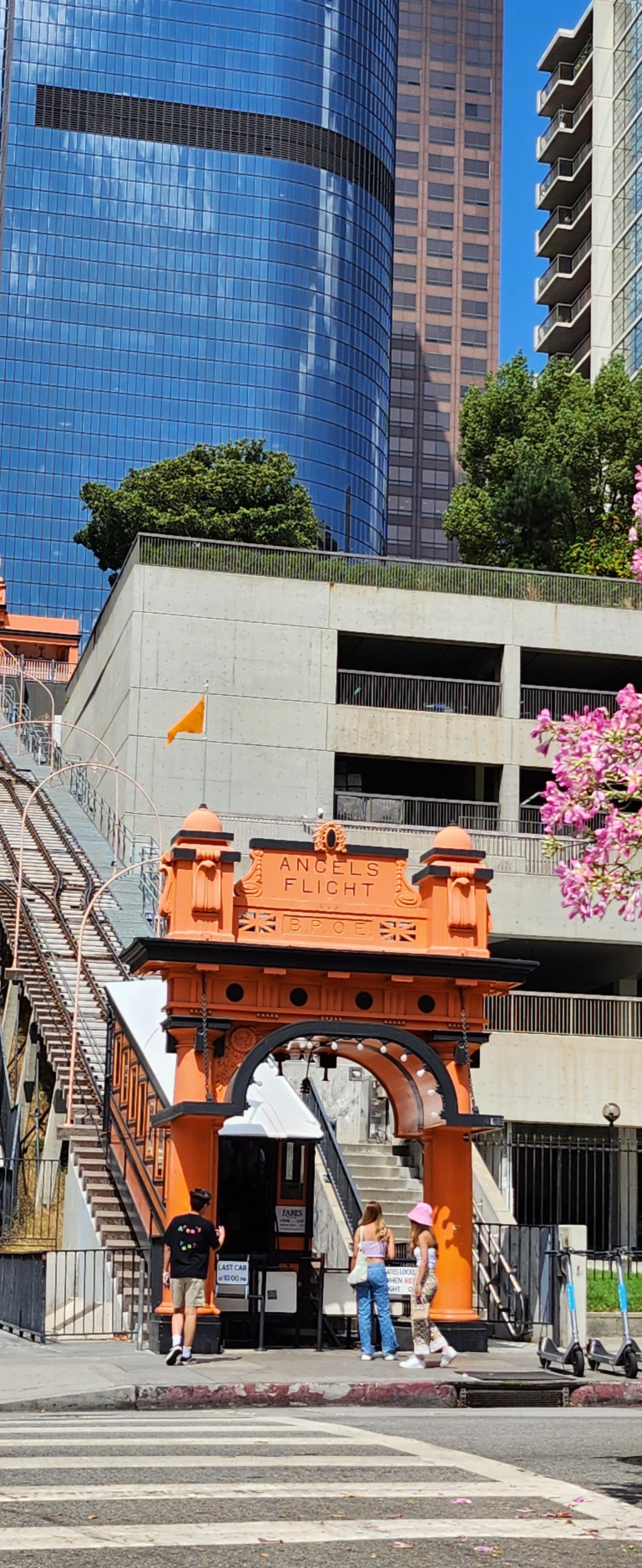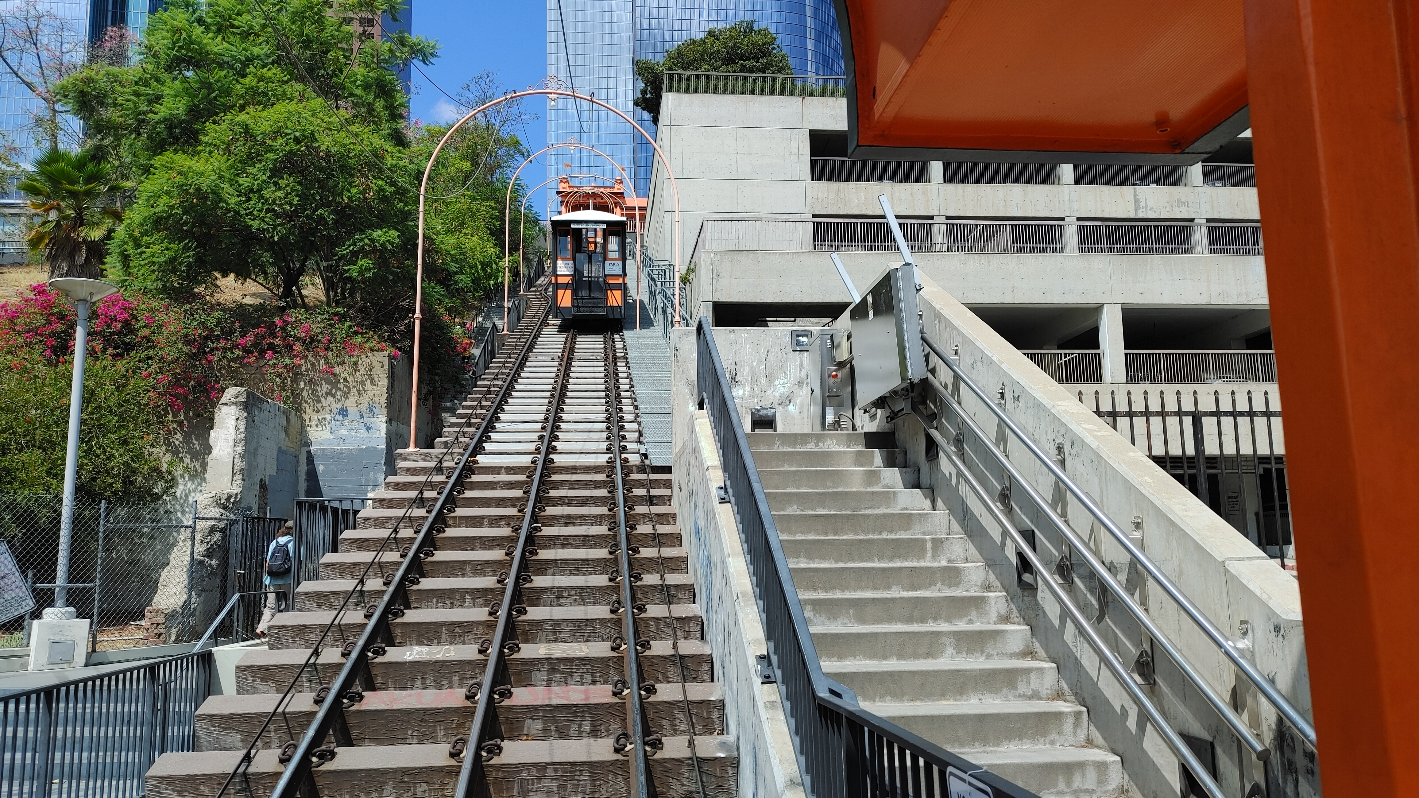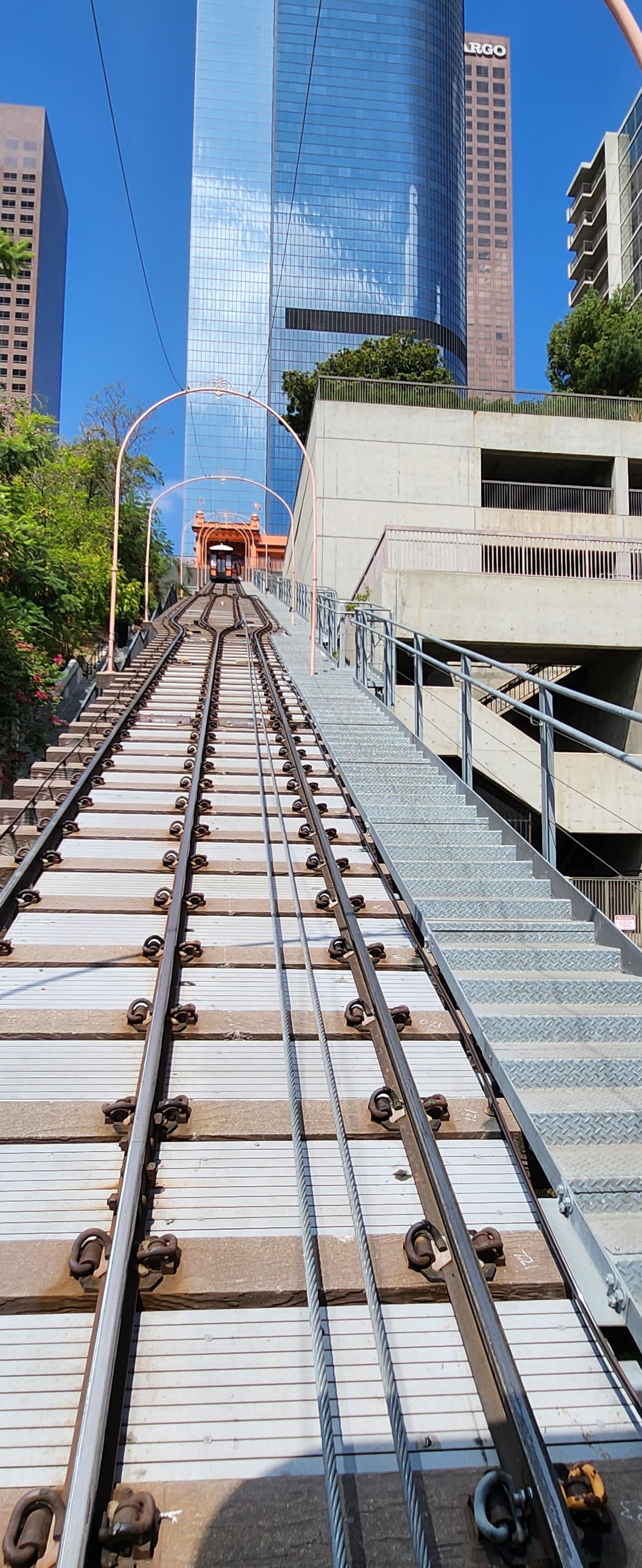 윗쪽의 벙커힐과 하래쪽의 다운타운 사이의 계단을 연결해주는 세상에서 가장 짧은 1달러 짜리 열차