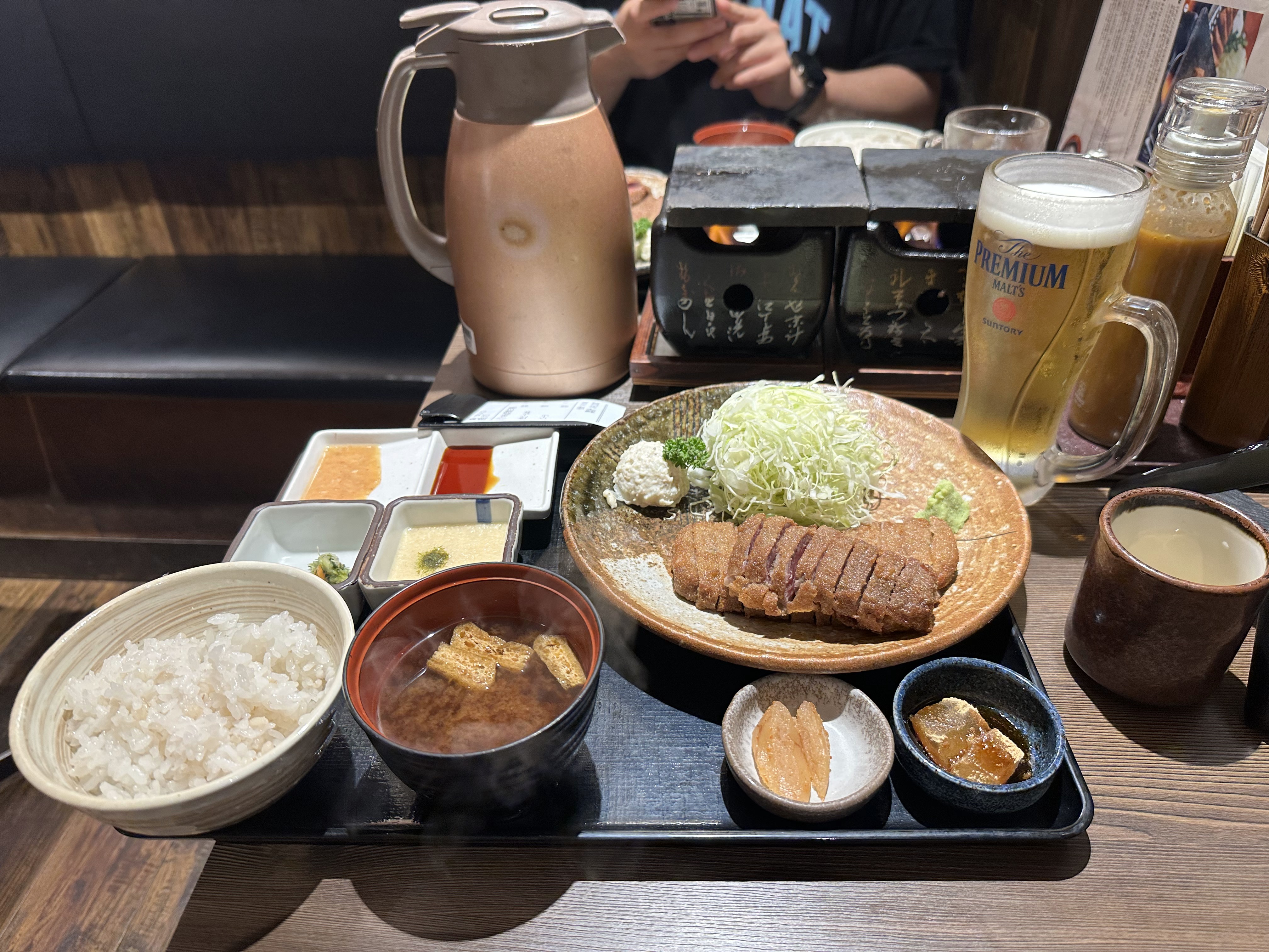 일본은 역시 나마비루! 나마비루와 함께 1.5인분 규카츠를 시킵니다. 가격은 3,100엔입니다.